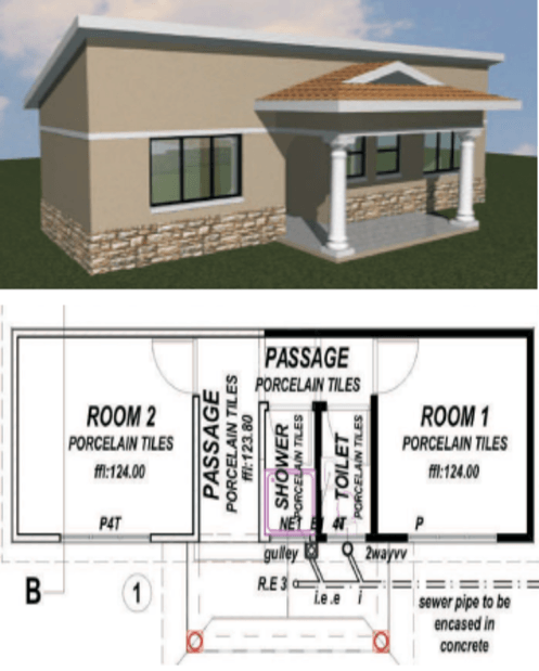 2 bedroom, toilet and shower